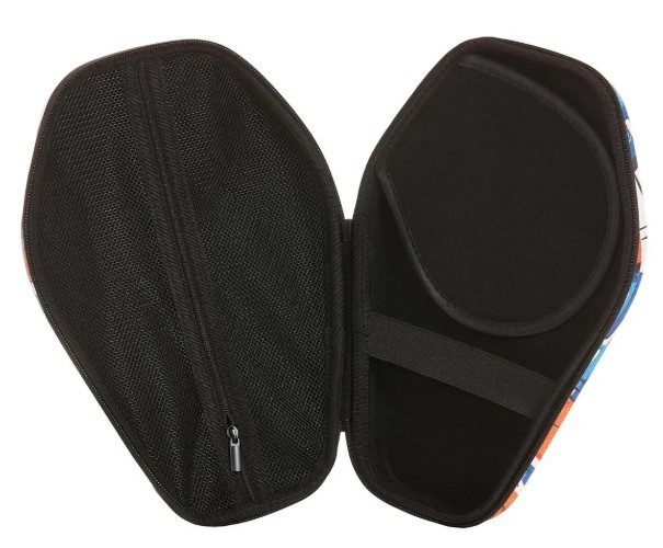 Завдяки великій круговій блискавці на 310° ви можете легко та широко відкрити кришку та мати доступ до внутрішньої частини. З правого боку є відділення для однієї ракетки (можна помістити дві ракетки). Ручка ракетки тримається на місці за допомогою міцної гуми шириною 2,7 см. Лезо ракетки надійно захищене вбудованим клапаном. Внутрішня поверхня чохла і клапан для захисту леза ракетки вкритий флісом, який забезпечує додатковий захист. Виготовлення чохла дуже високої якості, про що свідчить те, що всі края ретельно окантовані та підшиті.