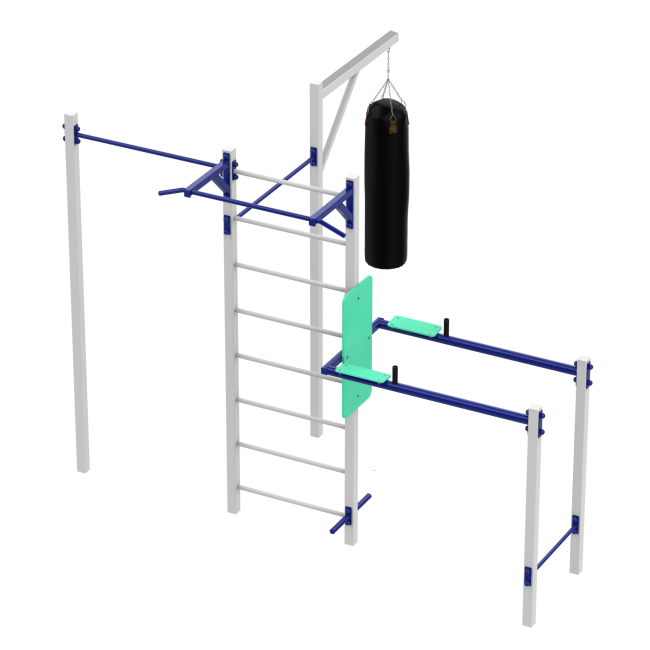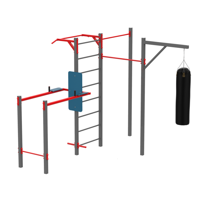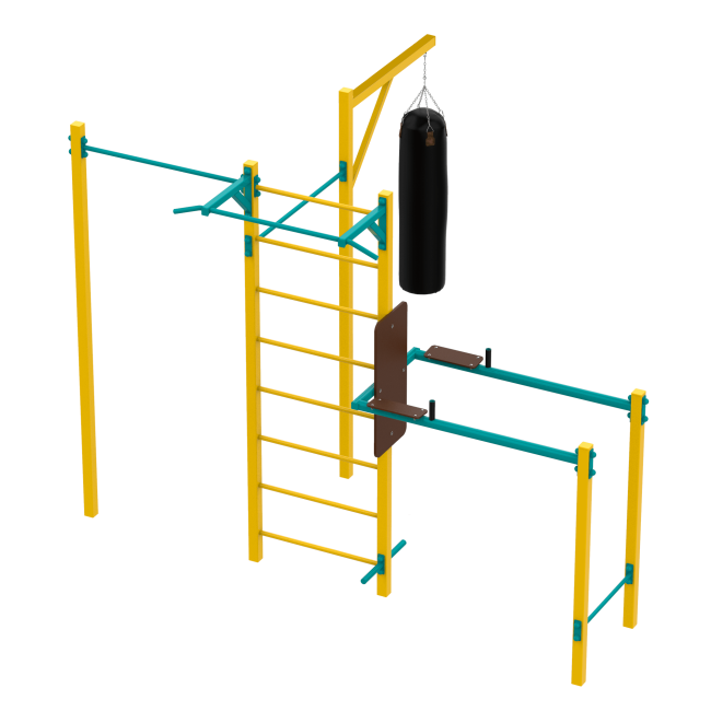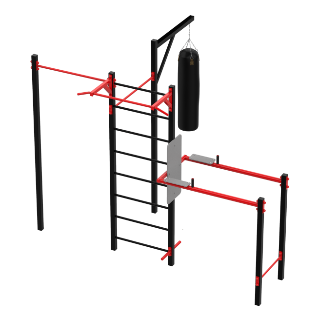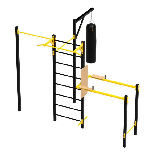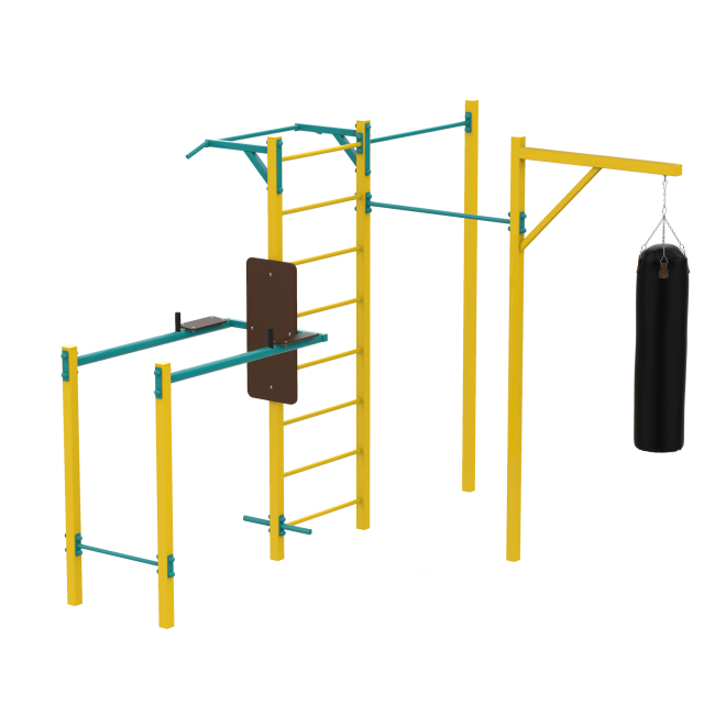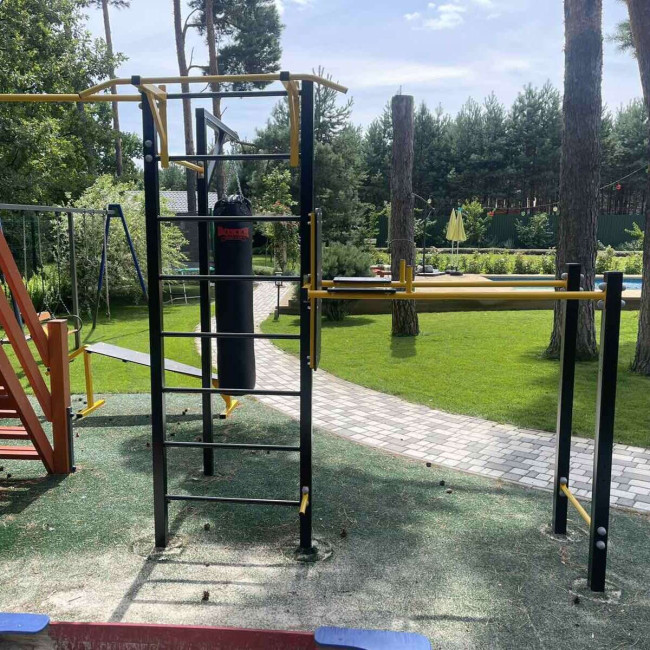 Поєднання турніків, шведської стінки та груші для комплексного розвитку тіла.