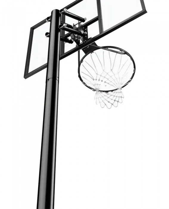 Це стаціонарна система, яка встановлюється безпосередньо в ґрунт, забезпечуючи максимальну стабільність і безпеку під час гри. Завдяки міцній сталевій конструкції, ударостійкому щиту з полікарбонату та професійному кільцю з амортизацією система ідеально підходить як для тренувань, так і для активних ігор з друзями чи родиною.