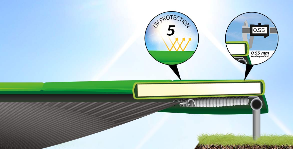 Батутний комплекс Berg InGround Champiоn + Safety Net-Comfort 270 35.39.06.01 - це доступна і зручна в застосуванні надійна конструкція, експлуатаційні характеристики якого повністю відповідають сучасним стандартам якості/безпеки. Ця модель оснащена батутом круглої форми з діаметром 270 см і спеціалізованої захистом у вигляді сітки з закривається входом для більшої зручності використання. Висота від землі становить 20 см, він розрахований на тестову навантаження 350 кг, при цьому мінімальна навантаження 70 кг Загальна висота виробу 200 див. Ця чудова конструкція неодмінно сподобається підростаючому поколінню, гарантуючи веселе дозвілля на свіжому повітрі і допомагаючи розвиватися фізично. Додаткові характеристики виробу включають діаметр труби карниза 38,1х1,5 мм, 64 пружини, товщину і ширину кромки батута 3х38 див.