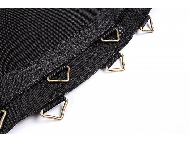 Особенность конструкции - внутреннее расположение сетки - помогает защитить пружины от случайных повреждений и продлить срок их службы. Полипропиленовое прыжковое полотно отличается стойкостью к большим грузам, влажности и солнечному излучению. Также для удобства батут оснащен хромированной лестницей и защитным полотном от дождя. Батут можно легко разместить во дворе, гараже или доме.