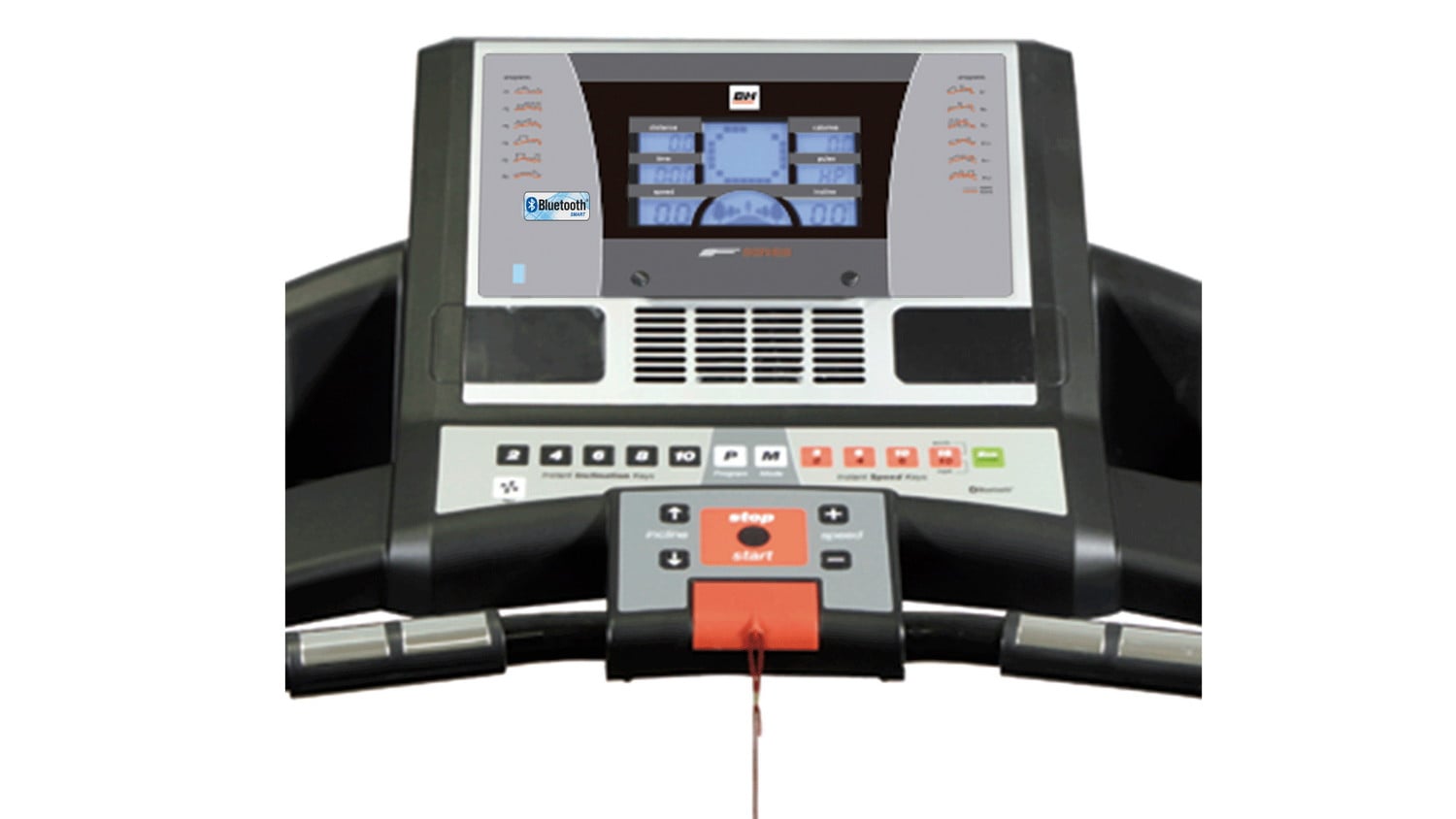 Бігова доріжка BH Fitness i.F2W Bluetooth - це дуже хороший вибір для всіх, хто шукає якісні пристрої для кардіо-тренувань середнього цінового діапазону. Транспортувальні ролики дозволяють переміщати бігову доріжку в межах квартири без особливих зусиль, а система SDS (Soft Drop System) спрощує її складання та розкладання. режиму ECO споживання енергії може бути зменшено на цілих 25%. Максимальна швидкість становить 18 км/год. Тренуючись на ній ви можете долати пагорби з кутом нахилу до 12%, завдяки можливості регулювання підйому. ;Кнопки швидкого вибору швидкості та кута нахилу забезпечують швидку зміну цих значень. Амортизацію вібрацій забезпечує 6 еластомерів і система K-Dumper. Додатковий комфорт тренування забезпечує вентиляція.