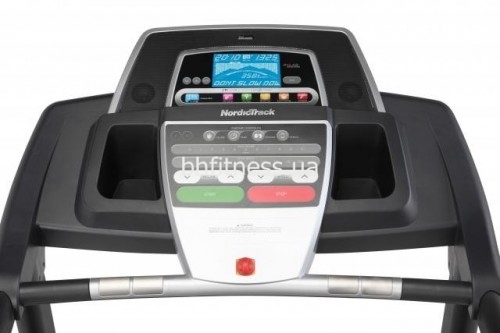 Ви у пошуках надійної, якісної та багатофункціональної бігової доріжки? Зверніть увагу на модель NordicTrack T 9.1, яка завдяки надійній гідравлічній системі складання, легкому переміщенню за допомогою транспортувальних роликів і компактним розмірам, чудово впишеться в інтер'єр вашого будинку. Задати необхідну навантаження, підібрати найбільш відповідну поставленим цілям програму тренувань, вибрати необхідний швидкісний режим дозволяють користувачам: 8 користувача та 8 програм на спалювання калорій; 1 програма з ручним вибором функцій; зміна при натисканні клавіші на рукоятках кута нахилу бігового полотна (0-10%) і швидкості (0.8 -20 км/год). Значно знизити згубний вплив на гомілковостопні суглоби і коліна дозволяє спеціальна система амортизації тренажера, що складається з трьох рівнів. Для того щоб тренування на біговій доріжці NordicTrack T 9.1 приносили не тільки користь, але і задоволення, виробником були встановлені: 7" LCD дисплей; легко керована консоль; зручні для хвату поручні; широка, виконана з МДФ, бігова поверхня; підставка для пляшки з водою і вбудована аудіосистема.