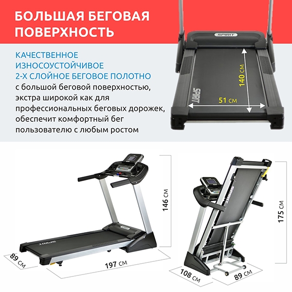 Высокое качество материалов и сборки, большой вал для стабильного сцепления, надежные подшипники коммерческого уровня, широкие приводные ремни, большой жидкокристаллический дисплей с голубой подсветкой, дистанционное измерение пульса и поставка в комплекте с беговой дорожкой нагрудного кардиодатчика, мощный двигатель и просторное многослойное беговое полотно, хорошо настроенная амортизация, длительный срок гарантии - основные достоинства беговой дорожки SPIRIT Esprit XT-185.16
