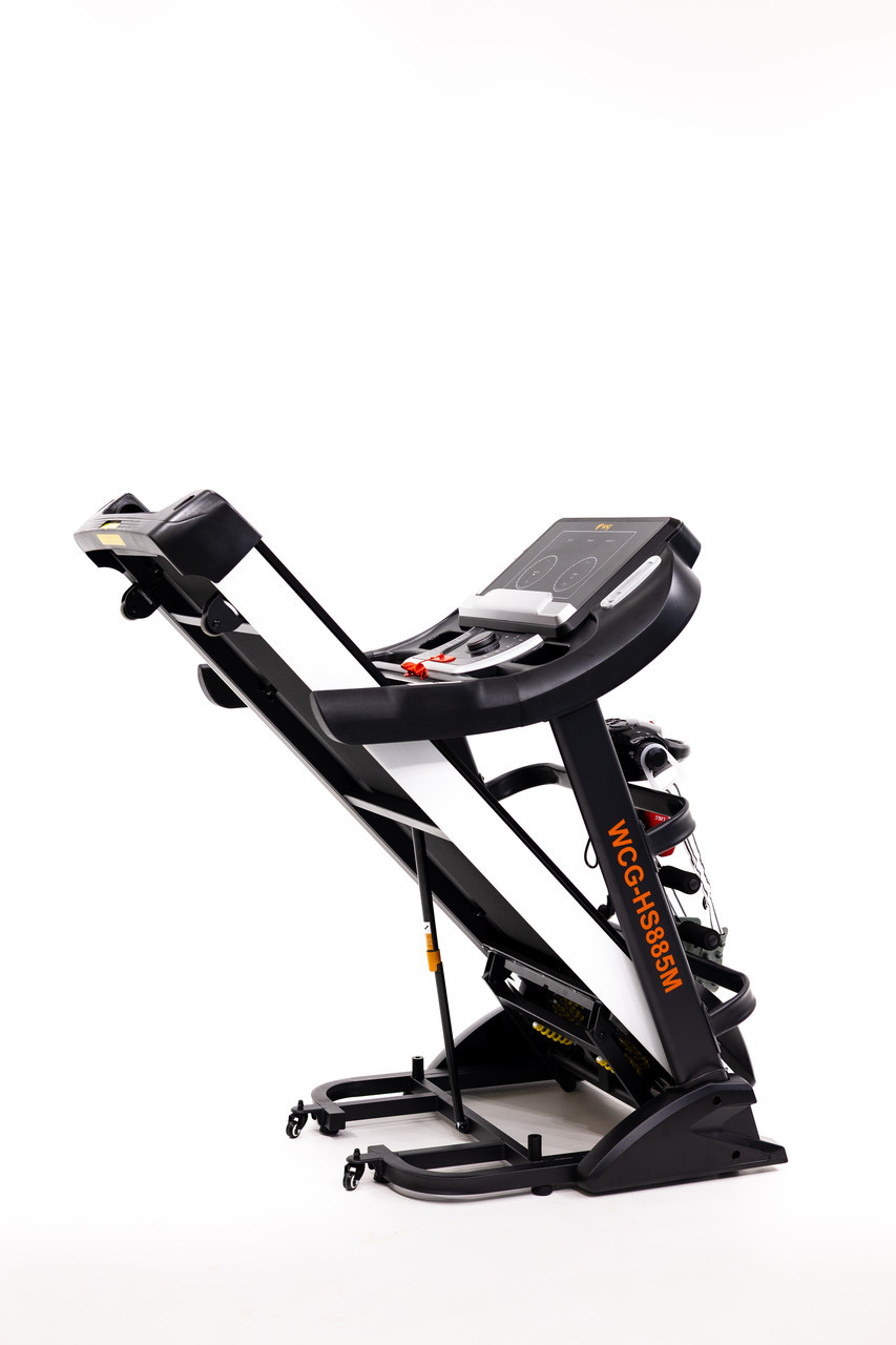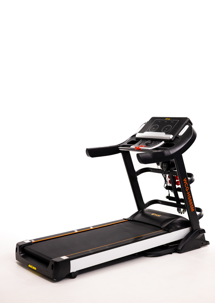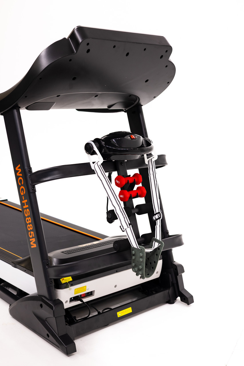 Хочеш підтримувати форму, не виходячи з дому? 🏡 Ця потужна бігова доріжка WCG HS885M стане твоїм надійним помічником у досягненні спортивних цілей! 💪 Вона поєднує в собі високу продуктивність, комфорт і широкий функціонал, а в подарунок ти отримаєш гантелі та масажер для комплексних тренувань!🎁