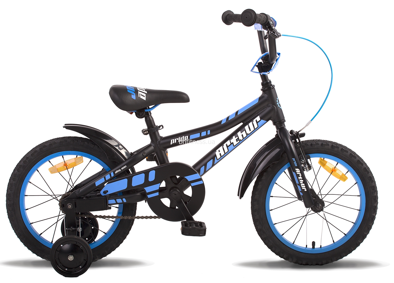 Велосипед 16 дюймів PRIDE ARTHUR SKD-16-64 зручний у використанні і володіє надійною конструкцією, що здатна витримувати великі навантаження. Він здатний згладжувати будь-які вібрації від нерівної дороги під час поїздки. Завдяки захисту на ланцюгу ноги маленького користувача ніколи не потраплять в неї, а тому, дитина не поранитись. Велосипед 16 дюймів ПРАЙД АРТУР СКД-16-64 володіє додатковими коліщатками, які призначені для того, щоб навчити дитину їздити на велосипеді. Після того, як дитина зможе самостійно кататися на двоколісному апараті, додаткові маленькі колеса можна буде демонтувати.
