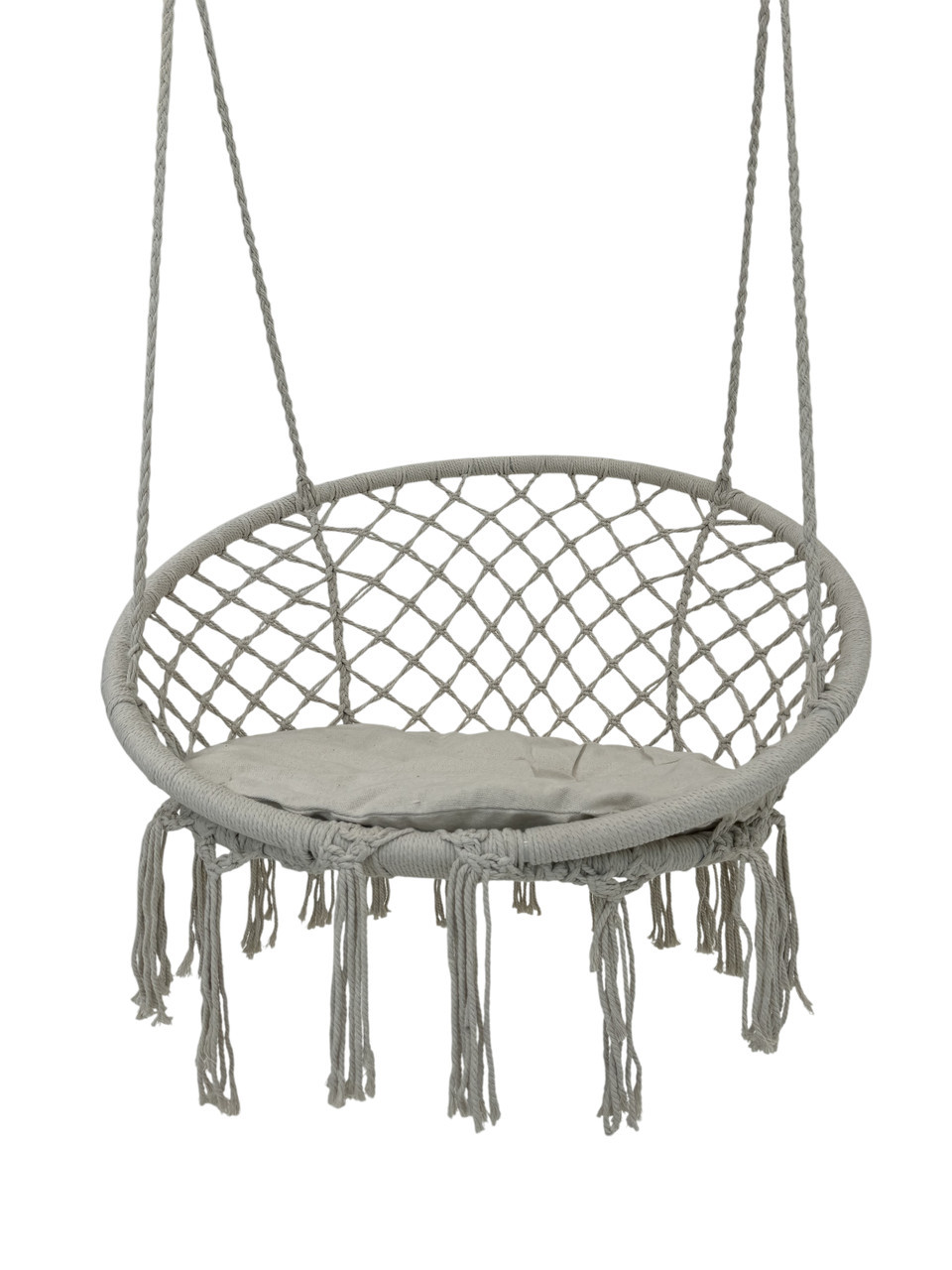 Підвісне крісло-гойдалка 80 см Плетена кругла гойдалка WCG + м’яка подушка Біла QNSW01WH (35904)