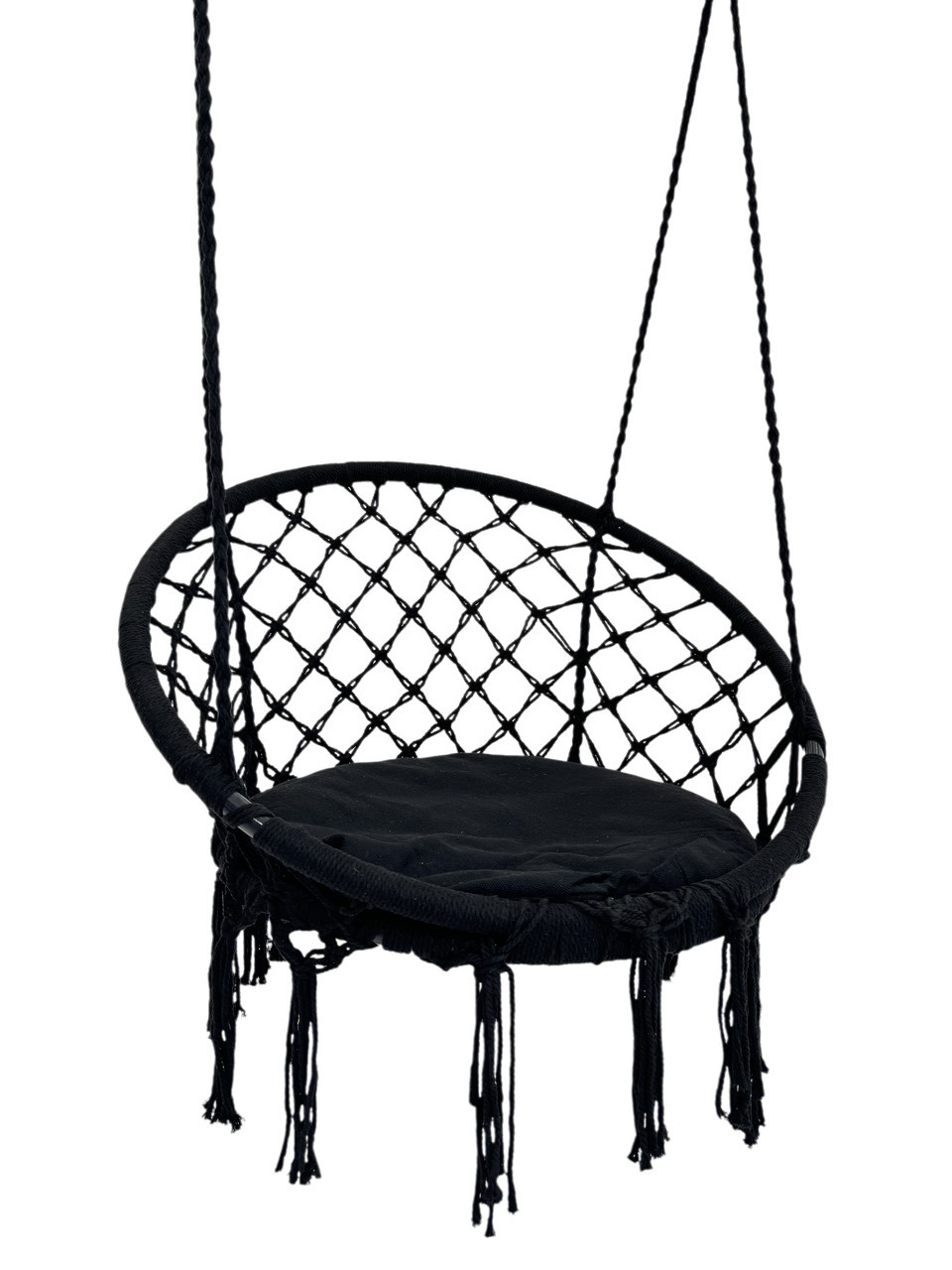 Крісло-гойдалка підвісна 80 см Плетена гойдалка кругла WCG + м’яка подушка Чорна QNSW01BL (35903)