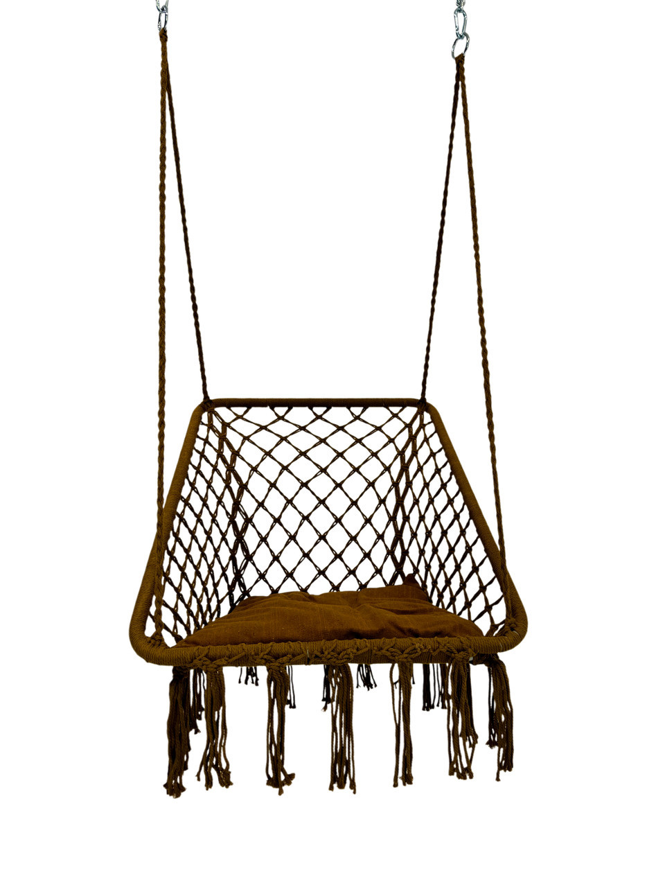Крісло-гойдалка підвісна Плетена гойдалка квадратна WCG + м’яка подушка Коричнева QNSW03BR (35910)