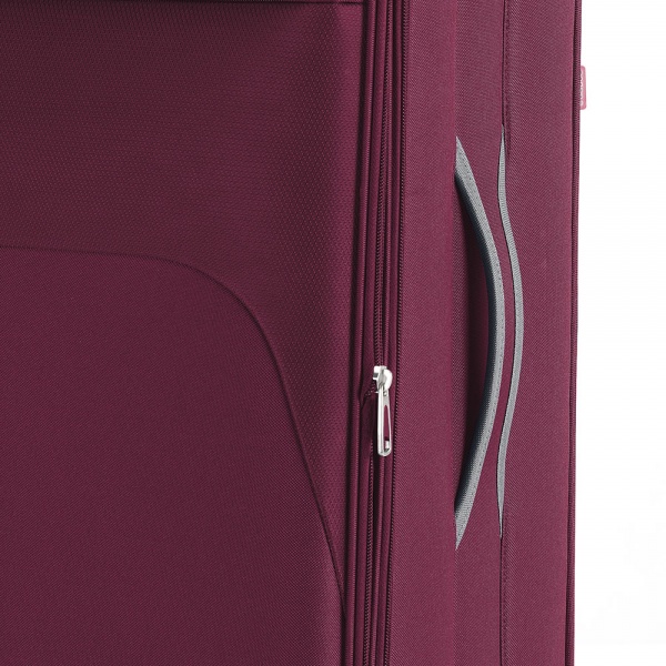 Валіза Gabol Zambia (L) Burgundy 924641 - зручна маневрена модель з значним об'ємом 90 л, що надає в розпорядження споживача все необхідне для приємних подорожей з високим рівнем захищеності багажу. Таким чином, комплектується замком TSA, що відкривається працівниками митної служби спеціалізованим ключем, зносостійким корпусом з 100% поліестеру, не руйнується під впливом УФ-променів, ергономічної телескопічною ручкою, створеної на основі алюмінію, яка регулюється по висоті і фіксується в 2 положеннях.