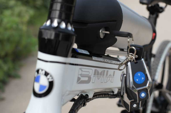 Електровелосипед BMW Electrobike RD (чорний) модель 2017 року - це комфортна конструкція і оригінальний стиль, який виділяється цікавою геометрією рами, елегантними колесами і потужним обладнанням, серед якого Ви знайдете електродвигун на 350W, що розширює експансію в зручну ергономічну експлуатацію. Також варто відзначити наявність ефективної дискової гальмівної системи, сидіння з оптимальною анатомічної формою і простий у використанні системи вибору передач швидкості, яка проводиться всесвітній відомим лідером продукції в даній сфері - компанією Shimano. Заявлені характеристики даної моделі демонструють 21 швидкість, максимальний темп 45 км/год, середню дальність пробігу при використанні одного заряду акумулятора 50 км. В даній конструкції використовуються задній електропривод і педалі в якості рушійної сили. Основні характеристики становлять маса 27 кг, допустима максимальна вага 120 кг, рама з алюмінію розміром 26 дюймів і батарея Lithium з ємністю 48V 12A з часом зарядки 4-5 годин.