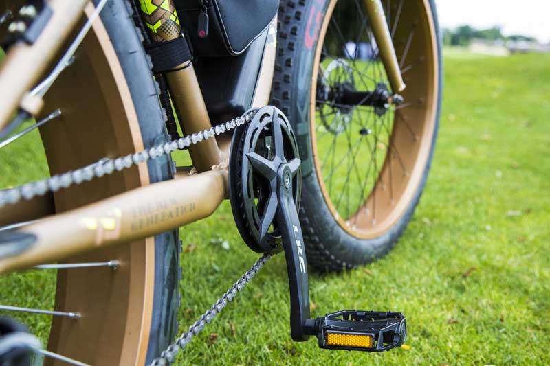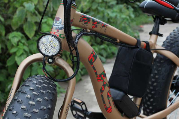 Електровелосипед LKS Fatbike Electro Rear Drive (500W) (золотий) - це досить значні показники автономності, які забезпечать дальність пробігу 50 км на одному заряді вбудованої літієво-іонної батареї ємністю 48V/12A. Дана модель легко складе альтернативу іншим велосипедів, демонструючи гарні показники потужності електродвигуна в 500Вт, що в загальній сумі забезпечує досягнення швидкості 41 км/год, Є на вибір 7 позицій швидкостей. В якості приводу можуть використовуватися як педалі, так і електродвигун. У багатьох користувачів також викличе інтерес люкс-рівень комплектації, що включає двоє ключів, протиугінну сигналізацію з пультами, просунутий борт-комп'ютер, в якому навіть є usb-порт і аналізатор швидкості, пару LED-ліхтарів спереду і ззаду, і практичні катафоти, а також зарядний пристрій. Основою велосипеда виступає легка, але міцна рама, що загалом забезпечує йому вага до 28 кг і виконана з алюмінію. Виріб також здатне витримати до 120 кг навантаження і оснащується потужними товстими колесами.