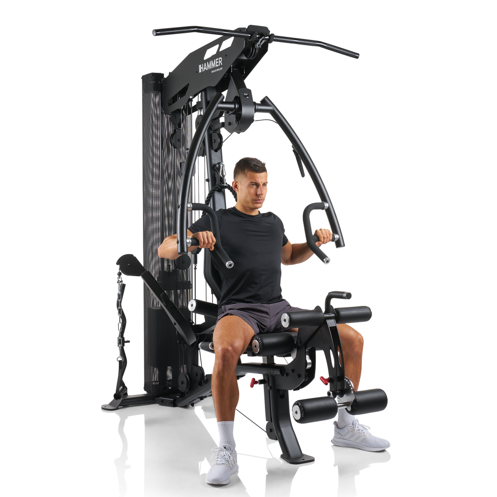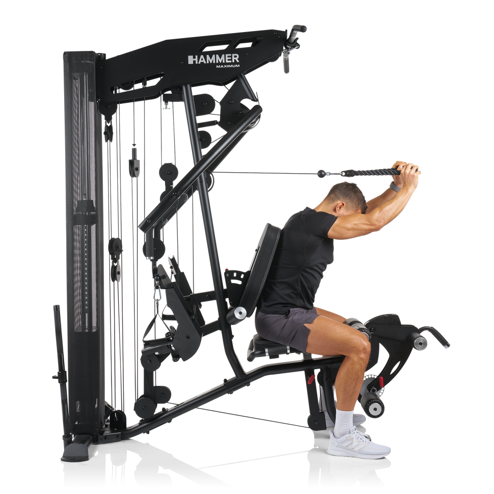 Hammer Maximum Autark 5.0 — це універсальна багатофункціональна мультистанція клубного класу, розроблена для інтенсивних силових тренувань у домашньому спортзалі або фітнес-просторі з обмеженою площею. Вона поєднує професійну надійність, продуману біомеханіку та компактні габарити, дозволяючи ефективно тренувати все тіло без потреби у великій кількості окремих тренажерів.