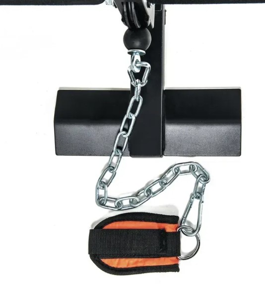 У комплекті — гриф для трицепса та манжета для щиколотки, що розширює варіанти вправ без додаткових витрат.