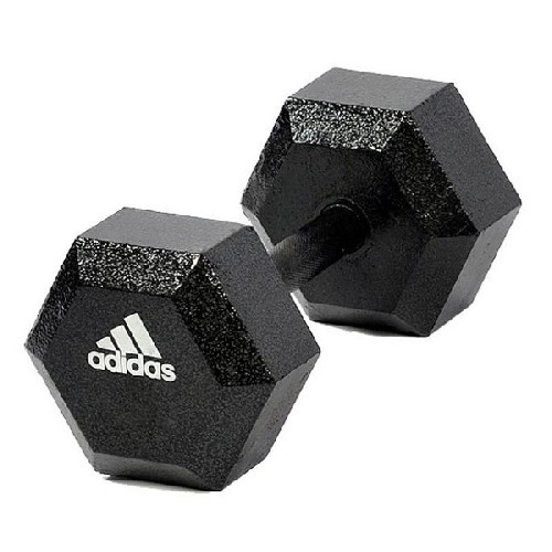 Гантель Adidas ADWT-10341 допомагає тренуватися з більшою ефективністю за рахунок скрупульозного підходу при створенні, що дозволив облаштувати даний інвентар усіма необхідними особливостями і нюансами для занять спортом і тренувань такого типу. Гантелі цього класу забезпечені прямим грифом рифленою конфігурації, така особливість допомагає уникнути прослизання рукояті в долоні атлета. Особливу увагу варто приділити гексагональному формату обважнювачів, виготовлених на основі кованого заліза, вони не катаються по підлозі, що підтримує ідеальний порядок під час інтенсивних тренувань, даючи можливість спортсмену повністю сконцентруватися на самовіддачі для отримання високих результатів. Вага гантелі складає 5 кг. Модель пофарбована в практичний чорний колір.