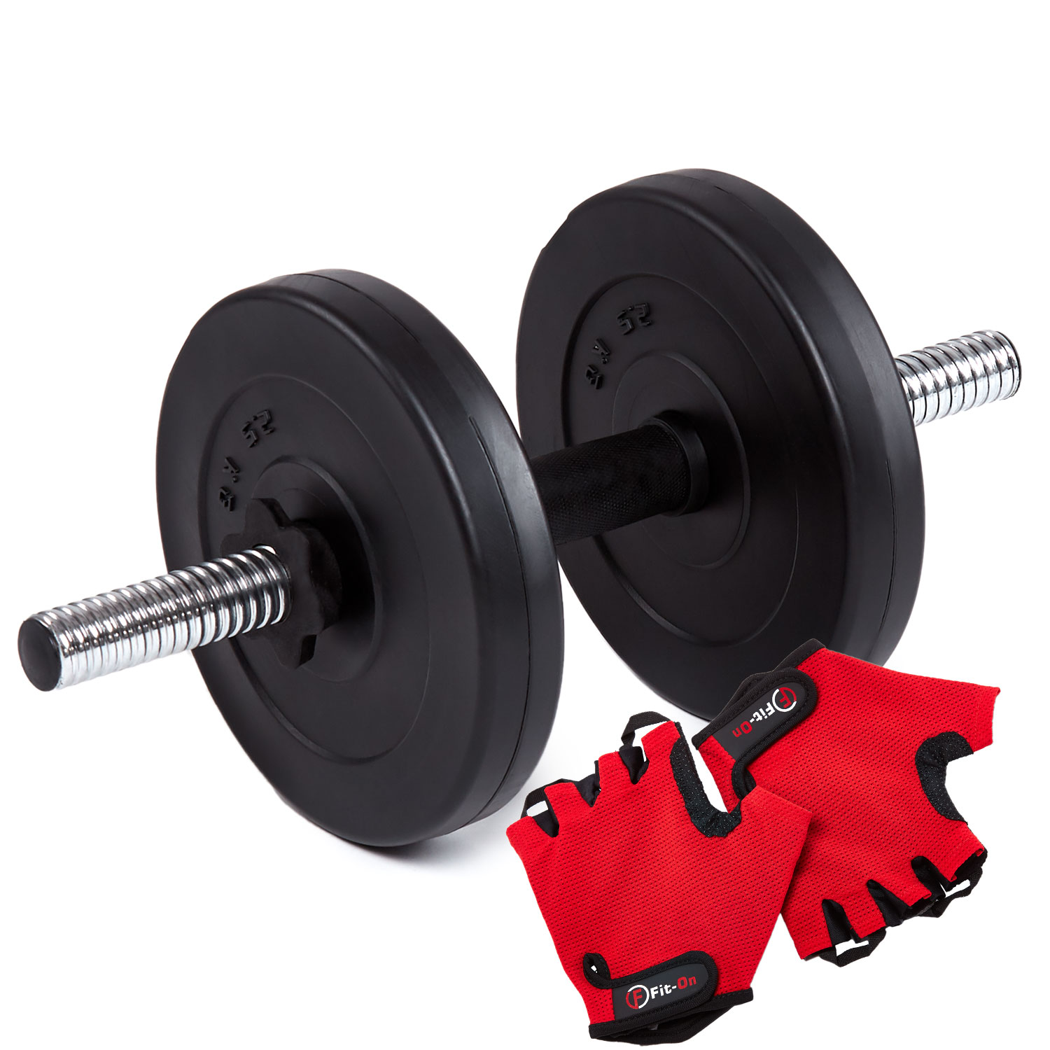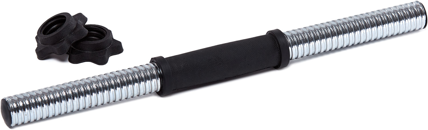 Диски покрыты несколькими слоями пластика, который обеспечивает защиту полов, панелей, плиток при падении гантели. В набор входит также солидный прямой гриф с винтовыми клеммами, общей длиной 45 cм. Ключевыми элементами грифа являются винтовые окончания и клеммы, рифленые рукоятки - эти элементы улучшают каждую тренировку.