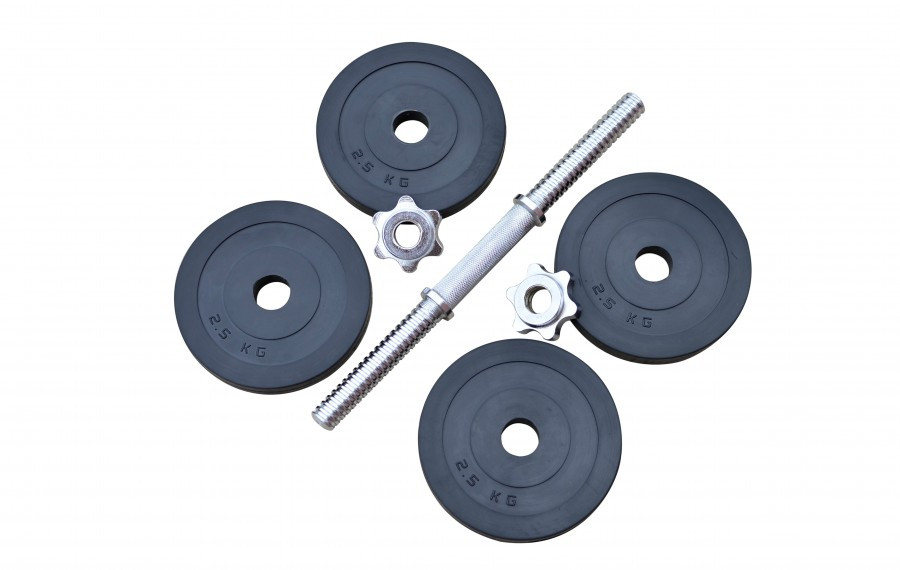 Комплектація: 4 диски по 2.5 кг, 1 гриф 35 см, 2 затискні гайки
