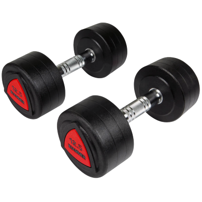 Гантелі професійні Hammer 2х12,5kg 4745 - це натхнення для тренування кожен день, що приносить бадьорість і потужно зміцнює м'язи. Створюють відмінні умови для тренування спортсменів-початківців, а також передусім розроблені для професійних фітнес-менів, які прагнуть отримати надійну і функціональну екіпіровку, що допоможе повністю сконцентруватися на досягненні поставлених перед спортсменом завдань і цього однозначно сприятимуть компактні розміри снаряда, завдяки чому не потрібно буде постійно відволікатися на заміну вагових млинців. Іншою важливою особливістю даного модельного ряду гантелей виступає оснащення їх довговічним поліуретановим покриттям, яке покликане зменшити ймовірність пошкоджень підлоги при падінні снаряда. В даному наборі поставляються дві гантелі по 12,5 кг