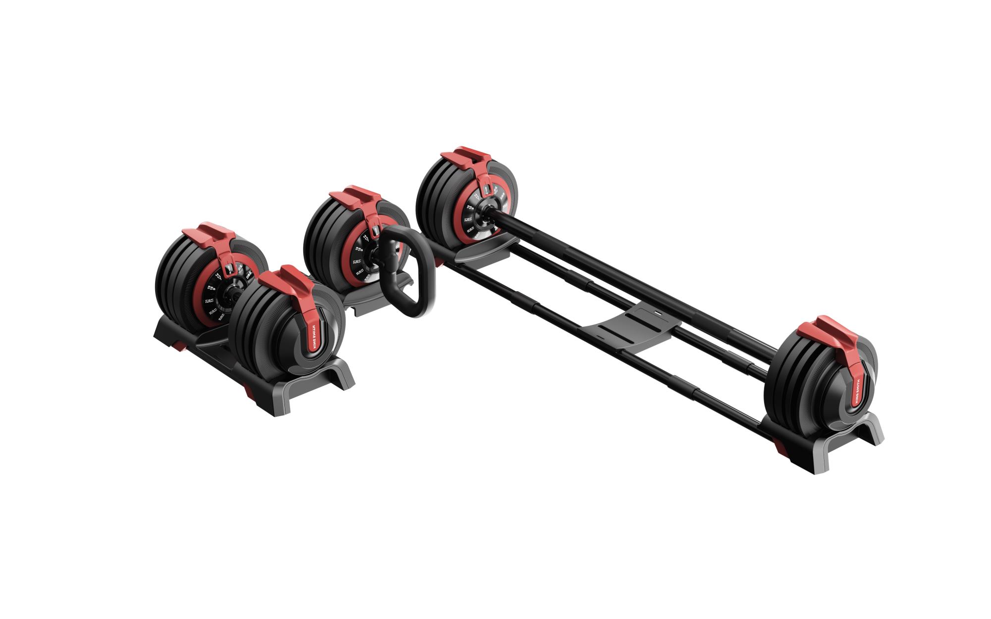— швидка зміна між режимами гантелі, штанги та гирі без інструментів.