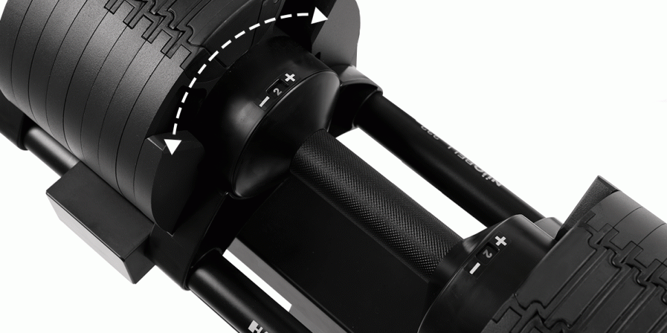 🔧 Все просто — обертаєш ручку гантелі, і вона автоматично фіксує вибрану вагу.