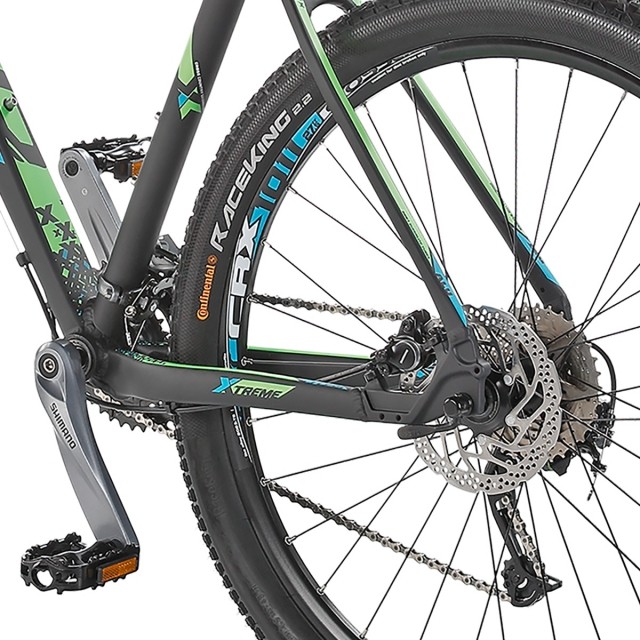 Велосипед Cross 27.5" XTREME ECO, 500 маневрений, комфортний і володіє солідним дизайном, створеним для любителів екстремальної їзди і поїздок по пересіченій місцевості. Оснащений рамою з алюмінію, для виготовлення якої застосовувалася технологія подвійного баттирования, поліпшує показники міцності виробу, завдяки чому велосипед здатний витримати до 100 кг навантаження.