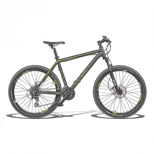 Підшукуєте надійний гірський велосипед, який би дозволили Вам без побоювання розсікати по гірських дорогах, лісовим вибоїнах і заміському бездоріжжю? Зверніть увагу на модель CROSS GRIP 124 від тм CROSS. Рама представляється велосипеда, виконана з алюмінієвого сплаву, розрахована на велосипедистів ростом 178 -185 див. Згладити рух на нерівних дорогах дозволяє встановлена передня вилка SUNTOUR. Відмінний накат забезпечують 26" колеса. Встановлена навісна система перемикання 24 передач SHIMANO ACERA дозволить велосипедистам задавати найбільш оптимальний швидкісний режим. При натисканні гальмівних ручок миттєво спрацьовують гідравлічні гальма TEKTRO DRACO. Ергономічне сідло SELLE ROYAL, досить широкі педалі VP-467, зручний кермо HL MTB допоможуть спортсменам зайняти правильне і найбільш комфортне положення.