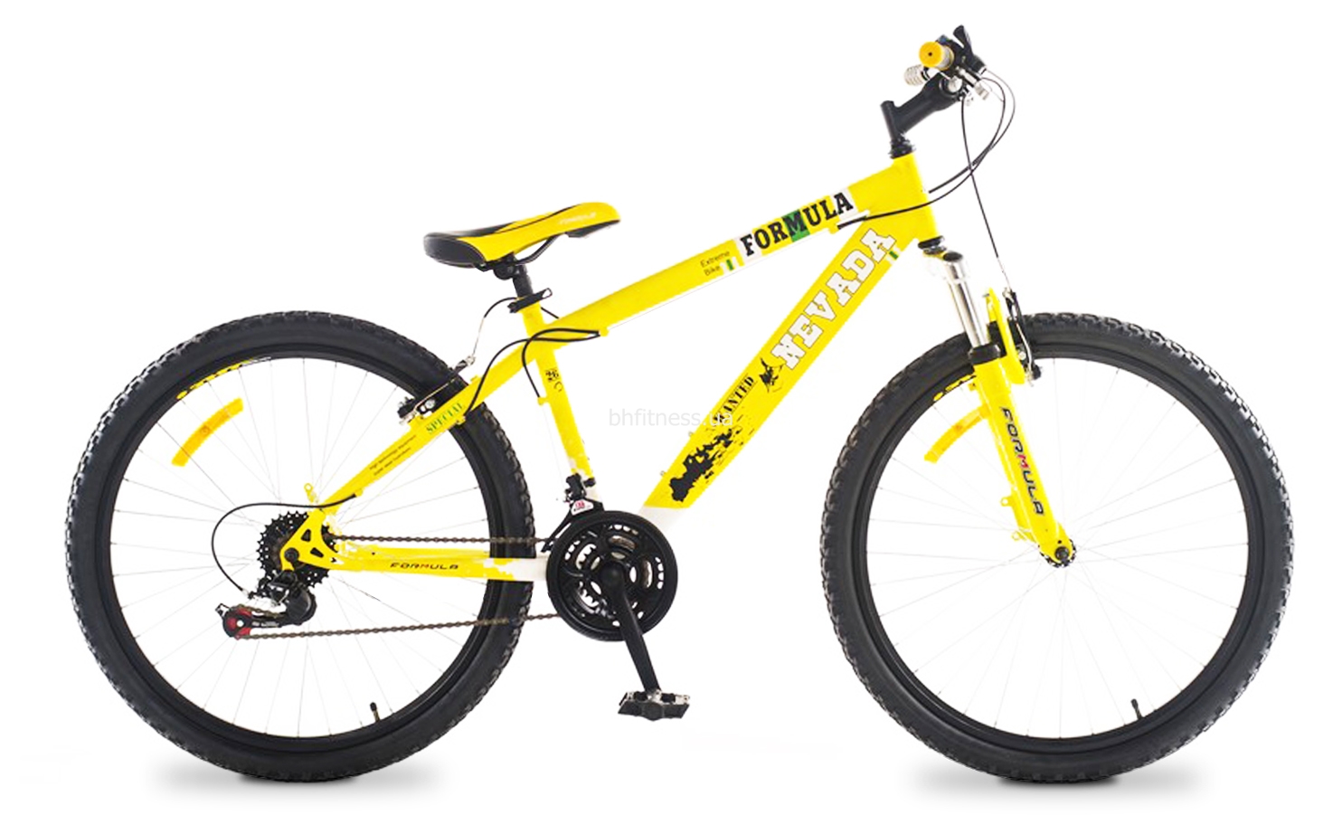 Гірський велосипед Nevada 26", безсумнівно, підійде молодим велосипедистам, які бажають здійснювати недільні прогулянки по заміських дорогах. Геометрія заниженою 14" рами, виготовленої з Hi-ten сталі, ідеально підійде підліткам, зростання яких становить 135 - 155 див. Досить просте навісне обладнання Formula спорт, сталева 50 мм амортизаційна вилка і алюмінієві V-brake гальма забезпечать достатньо надійний контроль над швидкісним режимом велосипеда ( 21 швидкість), а також його своєчасну і безпечну зупинку. Двостінні обода Formula AL та покришки (26 x 2.125) подбають про достатній накаті і зчеплення з дорогою 26" коліс велосипеда.