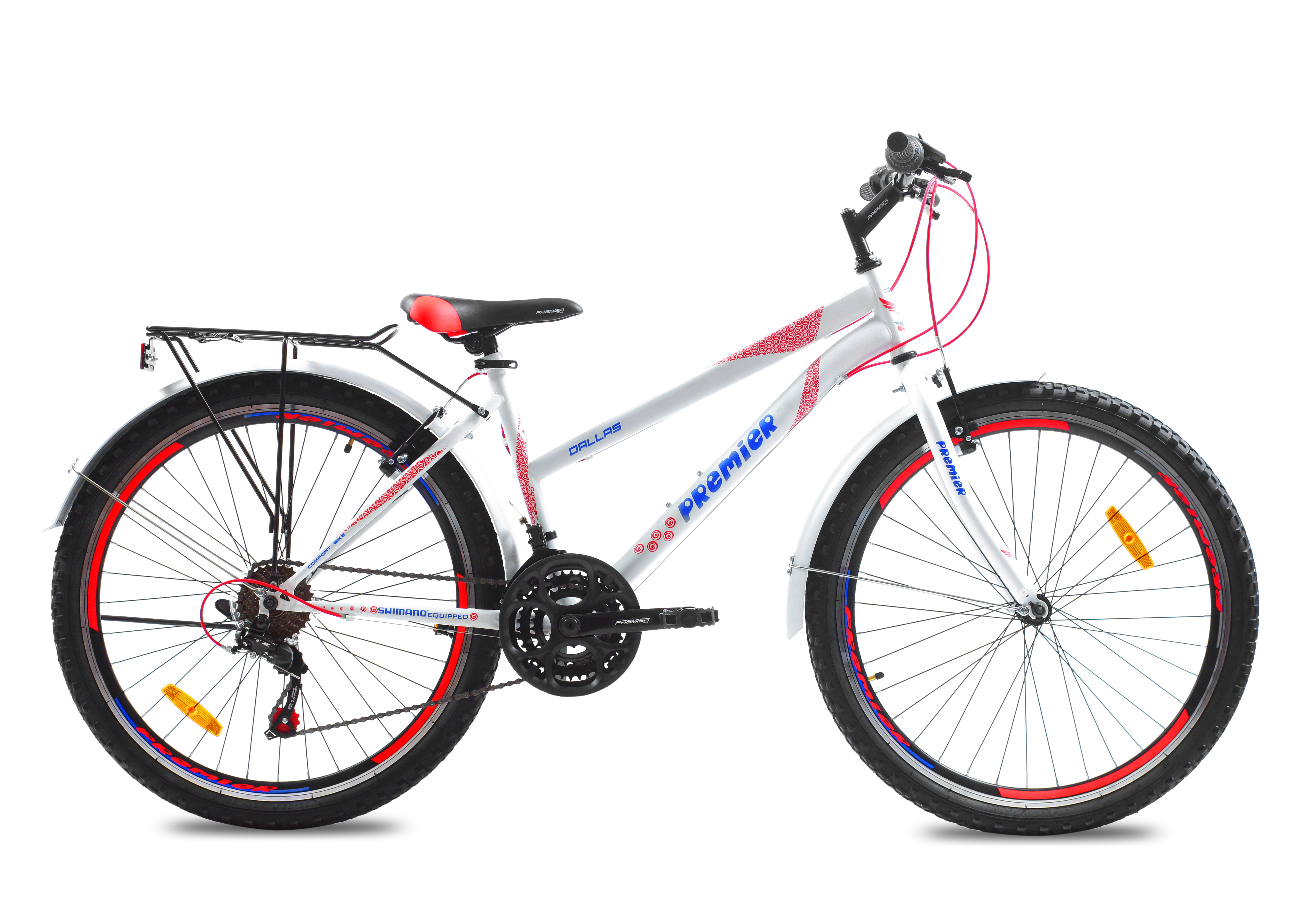 Велосипед Premier Dallas 26 16" SP0001492 виготовляється на основі міцної сталевої рами розміром 16, що зносостійка та довговічна. Для забезпечення велосипеда чудовими швидкісними характеристиками, він оснащується якісним обладнанням у вигляді заднього і переднього перемикача Shimano - Saiguan. Підсилюють конструкцію та знижують загальну масу виробу (яке має загальний вага 19 кг) здвоєні шини, виготовлені з надійних сплавів алюмінію. Безпека руху забезпечує сверхточная система гальм V-brake, що ефективна навіть в екстремальних ситуаціях. Доповнює комплектацію ряд корисних компонентів, таких як: вилка і сідло від Premier, 7-швидкісна касета, Shimano-манетки (SL-RS35), передача на 21 швидкості і колеса діаметром 26. Дана модель пропонує наступні колірні рішення - matt white і neon red.