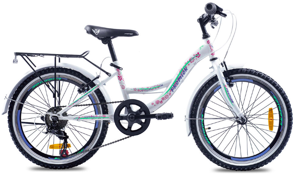 Велосипед Premier Pegas20 11" SP0000358 (білий) - це саме те, що хотіла б отримати кожна молода леді віком від 6 до 8 років, адже дана модель здатна подарувати радість від захоплюючих велопрогулянок і чудового зовнішнього вигляду, завдяки яким водій не залишиться без уваги. Радує око навіть забарвлення різнокольорових сорочок тросів, при цьому сталева рама розміром 11" гідна особливої уваги, її занижена геометрія максимально зручна для користувачів ростом від 100 до 130 див. Специфікація даного велосипеда дозволяє долати невеликі купини і тріщини в асфальтному покритті з високим рівнем зручності. Встановивши на дану модель велосипеда тільки найбільш відповідні технічні елементи і обвіс, виробник подбав не тільки про елегантному дизайні, але і про ефективність управління швидкістю і гальмуванням, а тому в комплекті використовується ободная система гальмування V-brake, трансмісійна система від Shimano, манетки SL-RS35, покришки та сідло від Premier, кермо Riser, педалі Plastic, міцна металева підніжка.