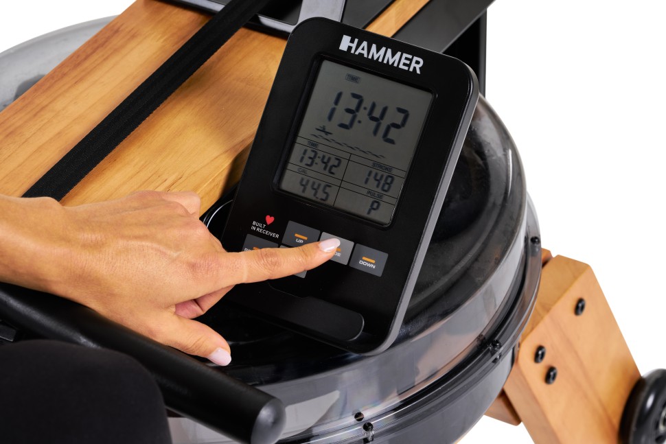 HAMMER AquaFold (12006) — це сучасний гребний тренажер преміум-класу, який поєднує реалістичну водну систему навантаження 🌊, інноваційний складаний механізм та стильний корпус із натурального дерева 🌳. Він створений для тих, хто цінує ефективні тренування, комфорт і естетику в кожній деталі.