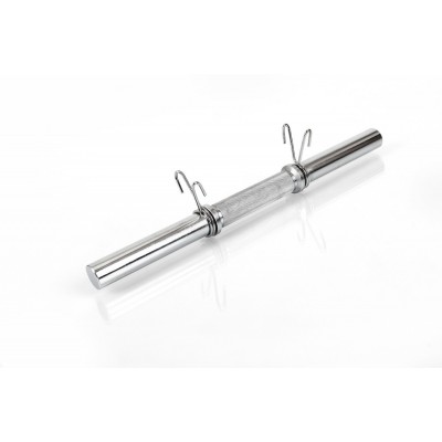 якісний інструмент для ефективних тренувань, що забезпечує солідний експлуатаційний термін, за час якого повністю окупить свою вартість. Чудові можливості для роботи з грифом пропонує рельєфна поверхня, нанесена на ділянку, де здійснюється хват рукою. Легко регулюється, має міцну металеву основу з хромованою поверхнею, а також забезпечується замками пружинного типу. Інші важливі технічні характеристики включають: діаметр 3 см, довжину 45 см, масу 2,56 кг. Форм-фактор рукоятей - прямий.