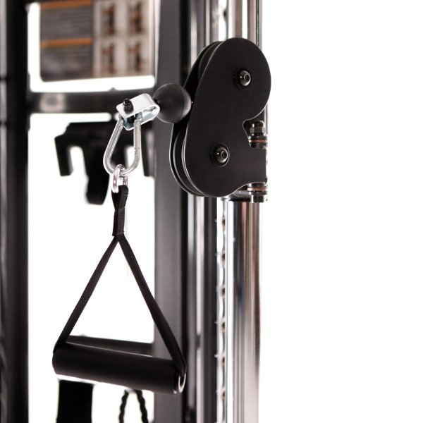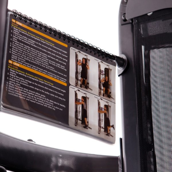 користувачів завдяки особливій сверхплавной механіці. У Ваше розпорядження надходить великий набір численних тягових рукояток, також тут присутній широкий прямий гриф W-подібний гриф, пара рукоятей для кожної руки та інші. Серед важливих особливостей тренажера необхідно відзначити наявність ножні лямки і канатної тяги. Багатий функціонал кросовера в поєднанні з практичними габаритами 120х137х207 см, витривалою конструкцією та використанням тільки високоякісних матеріалів, що дозволяє з упевненістю рекомендувати даний тренажер широкому колу спортсменів. Стандартна специфікація передбачає вага 284 кг, допустиме навантаження масою користувача до 120 кг.