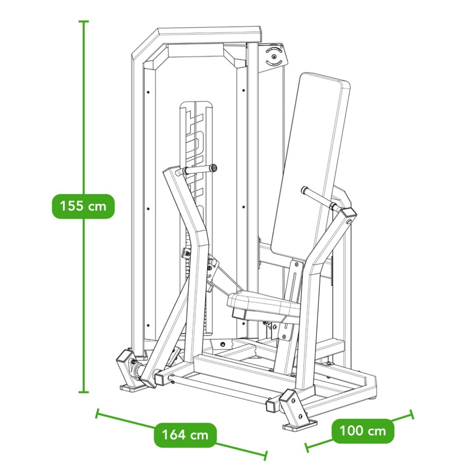 Ваговий стек до 120 кг та співвідношення передачі ваги 1:2 забезпечують потужний, але контрольований опір, ідеально підходящий для силових тренувань та росту м'язів.