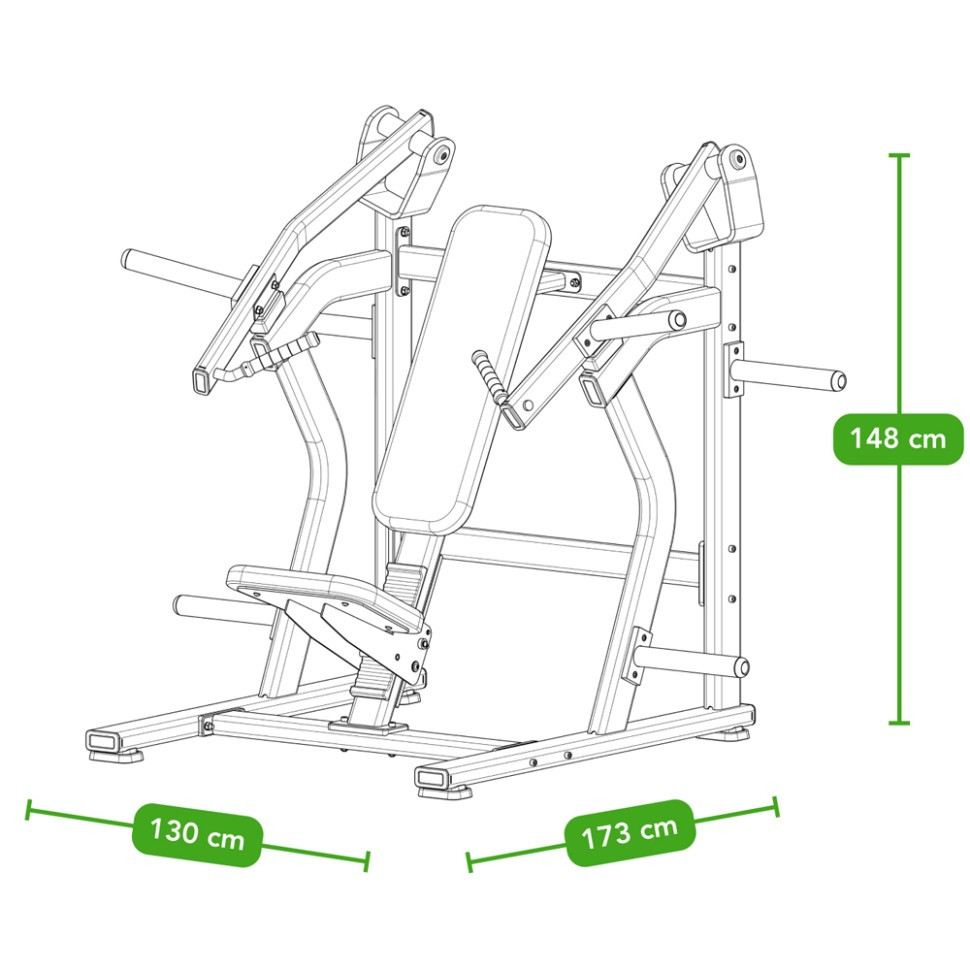Чи є у вас потреба у сфокусованому та ефективному тренуванні верхньої частини грудних м'язів? 💥 Тренажер Tunturi Platinum Incline Chest Press (25PVP06000) — це професійне ізо-латеральне обладнання, чий кут нахилу ідеально націлений на верх грудей та плечі. Опір на вільних вагах (до 150 кг на штифт) сприяє максимальному приросту сили, а комерційна якість гарантує стабільність та довговічність!