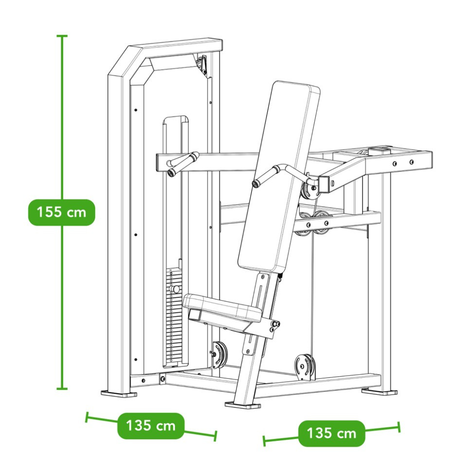 Станок спеціально розроблений для оптимальної активації та ізоляції м'язів плечей, що забезпечує максимальний розвиток і приріст сили.