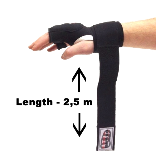 Боксерські бинти FirePower FPHW5 Gel S/M, L/XL володіють оптимальною довжиною 2,5 м і дозволяють покрити зони навколо великого пальця, максимально фіксуючи зап'ястя. Спеціальна посилена прошивка під палець OverLock абсолютно усуває слабке місце гелевих бинтів, дозволяючи місцем їх кріплення не розриватися, саме тому на сьогоднішній день рішення у вигляді бинтів-рукавичок на основі гелю є одним з унікальних способів досягти нового рівня комфорту, надійно захищаючи руку від ушкоджень, не витрачаючи багато часу і зусиль під час одягання. Даний бинт на манжеті виготовляється із застосуванням бавовни, в який доданий еластан, при цьому ударна частина кулака наповнена прошарком з гелю, а інша частина рукавички реалізується на основі практичного неопрену, що дає можливість волозі безперешкодно випаровуватися. Колір - чорний.