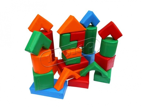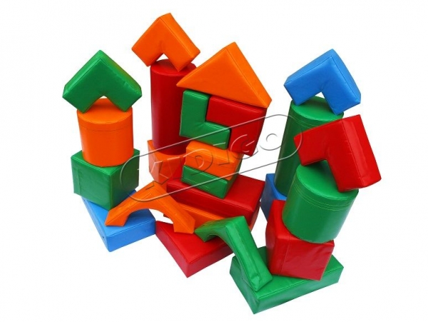моторики/уяви у юних користувачів, пропонуючи дітям веселу гру і можливість вдосконалювати свої навички. Поставляються в наборі фігури мають габарити: дві таблетки 24х24х24, чотири куба 24х24х24, шість полуступеней 24х24х12, чотири паралелепіпеда 48х24х12, два циліндра 24х24х48, два трикутника 24х24х12, дві арки 24х24х12 і два блоки 24х24х12. Всього в комплекті 24 будівельних модуля і 8 фігур, виконаних в різнобарвною розфарбуванні.