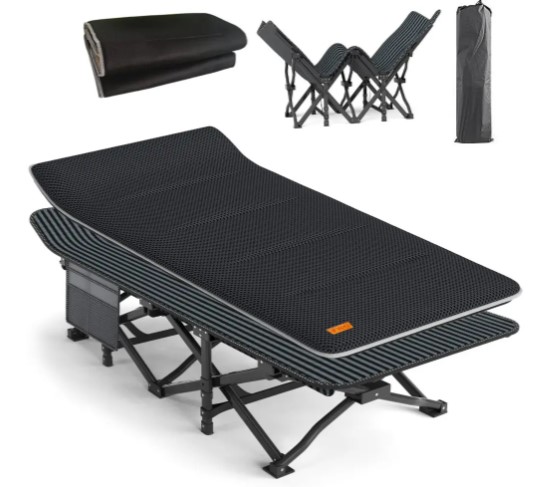 Портативна розкладачка доступна для сидіння, лежання та сну поставляється разом з чохлом в комплекті для зручного зберігання та транспортування. Використовується як розкладачка для дорослих, дітей, офісна розкладачка або гостьове ліжко в кімнаті, розкладний шезлонг для відпочинку на задньому дворі або на пляжі.