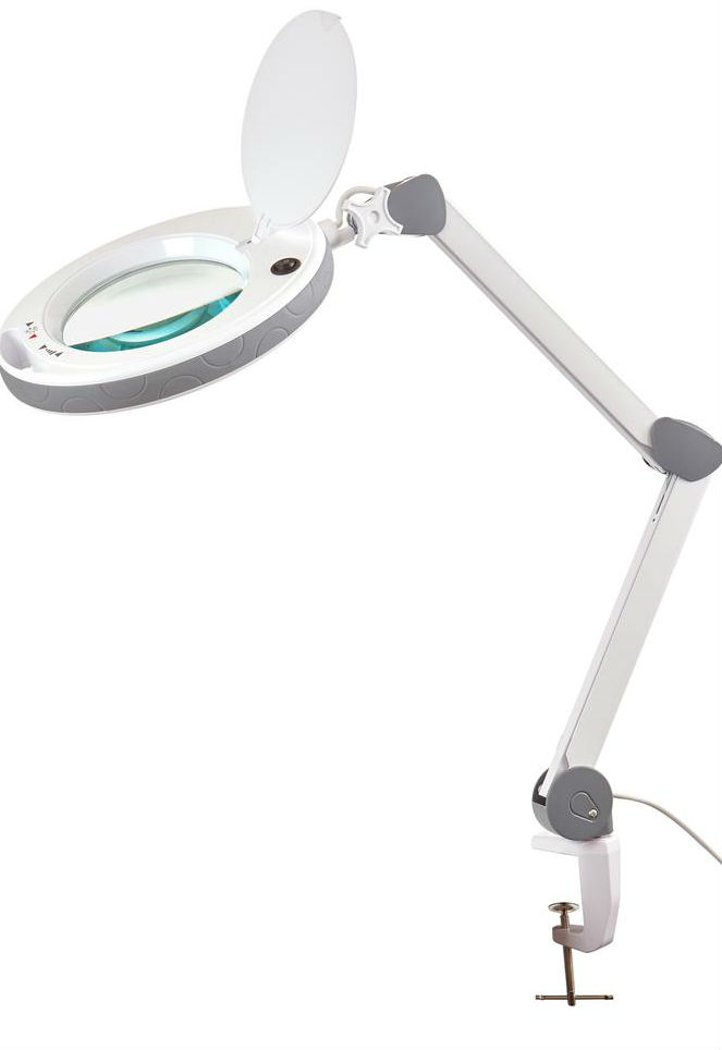 Лампа-лупа необхідна для збільшення і підсвічування в роботі косметолога, майстри манікюру, ювеліра, годинникаря. Дані лампи добре користуються попитом у тих, кому необхідно працювати з дрібними деталями, паяти мікросхеми, займатися рукоділлям або читати. Лампа має в комплекті кріплення до столу у вигляді струбцини, лінза захищена спеціальною кришкою. Для зручності зверху на лампі розташована ручка. Відмінною особливістю є легкість у використанні і можливість повертати її в усіх напрямках і фіксувати в будь-якому положенні, механізми довговічні і не розхитуються згодом.