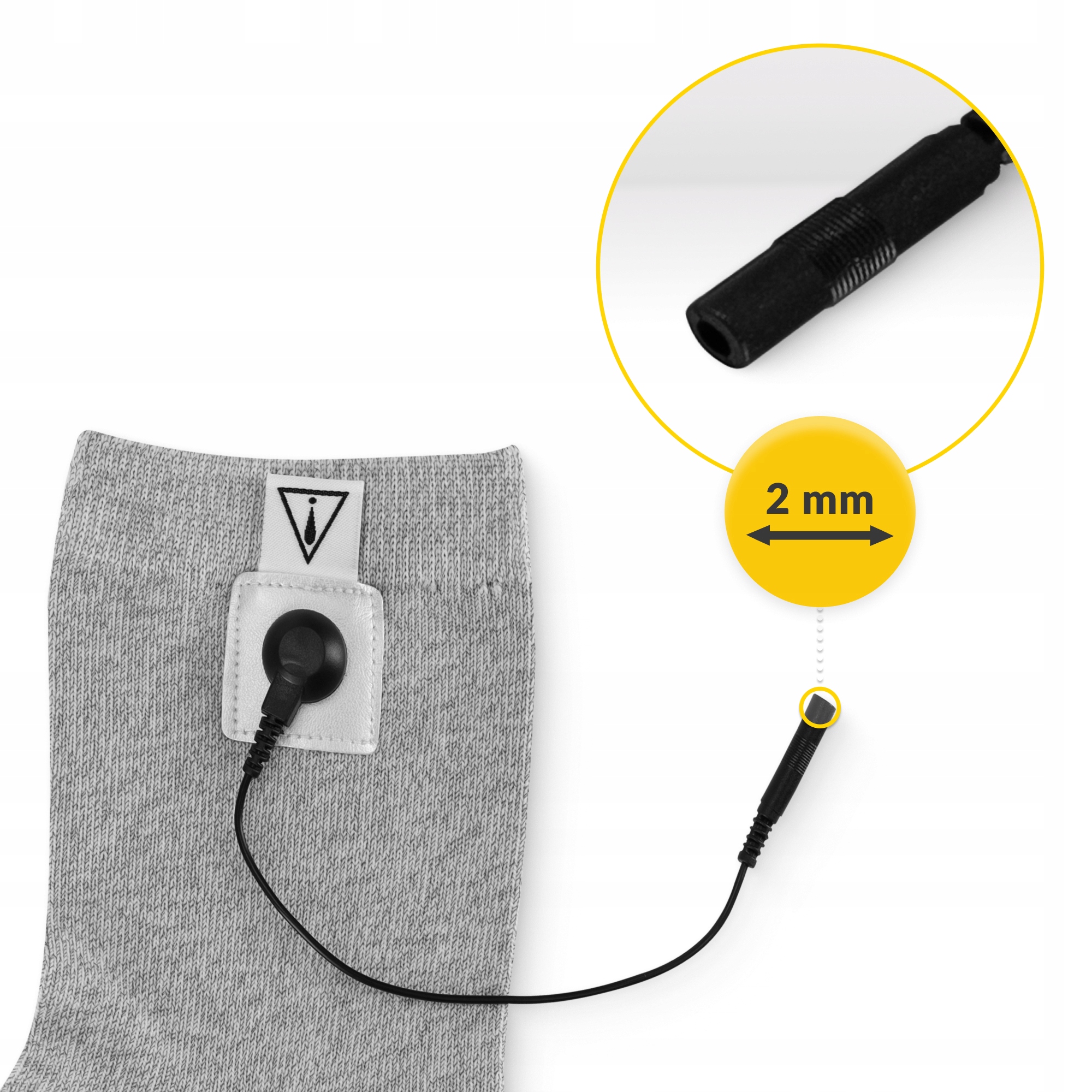 3️⃣ Прикріпіть гелевий електрод на 4 см вище верхнього краю шкарпетки.