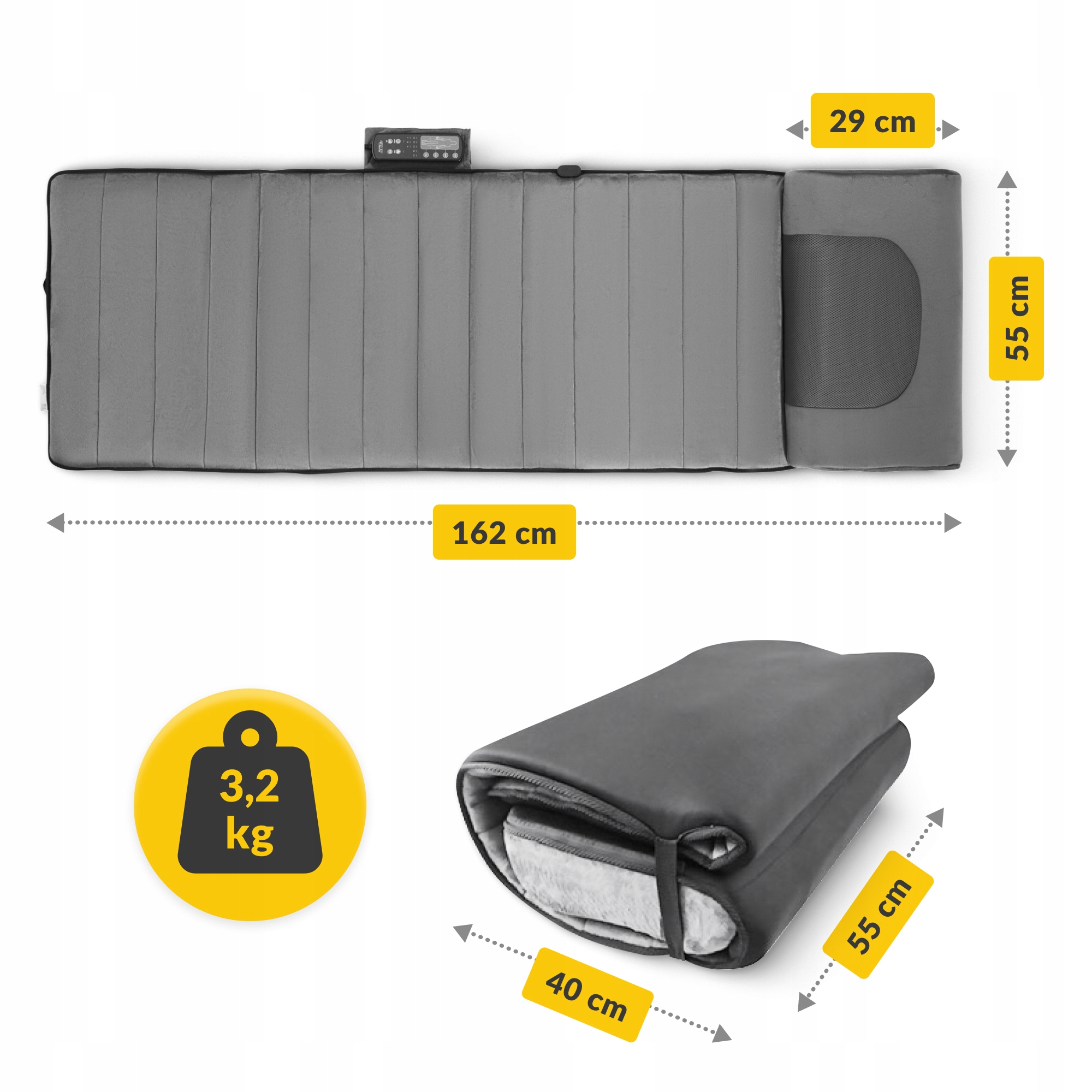 Функція підігріву надає приємне тепло, що стимулює кровообіг, покращує регенерацію тканин і допомагає позбутися спазмів. Завдяки ергономічному дизайну, м’якій оббивці та зручному пульту керування, користування накидкою просте, приємне та інтуїтивне.