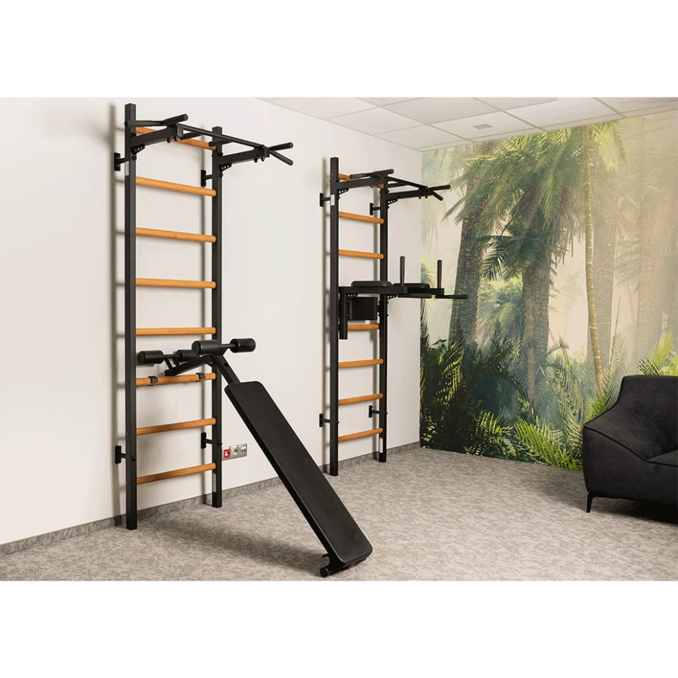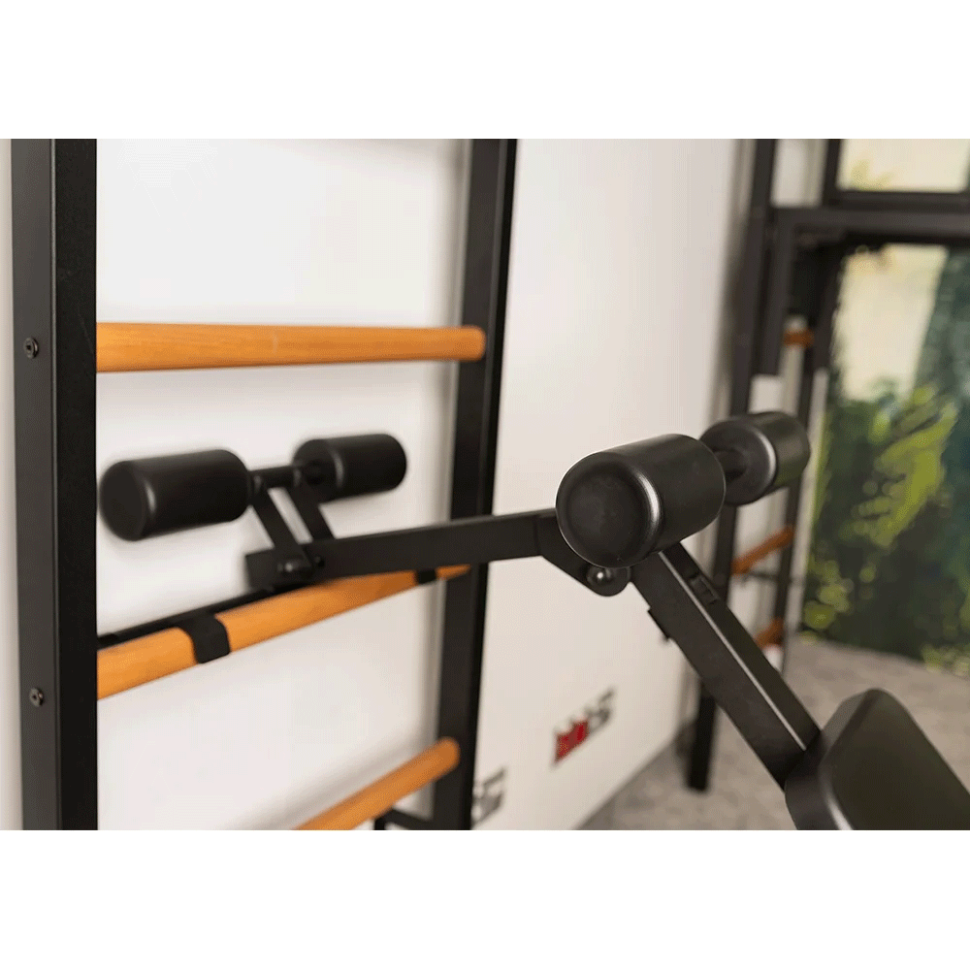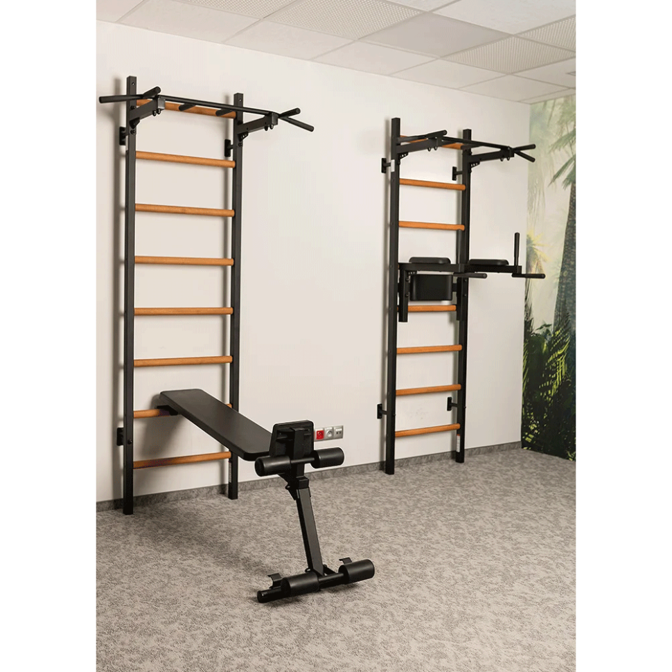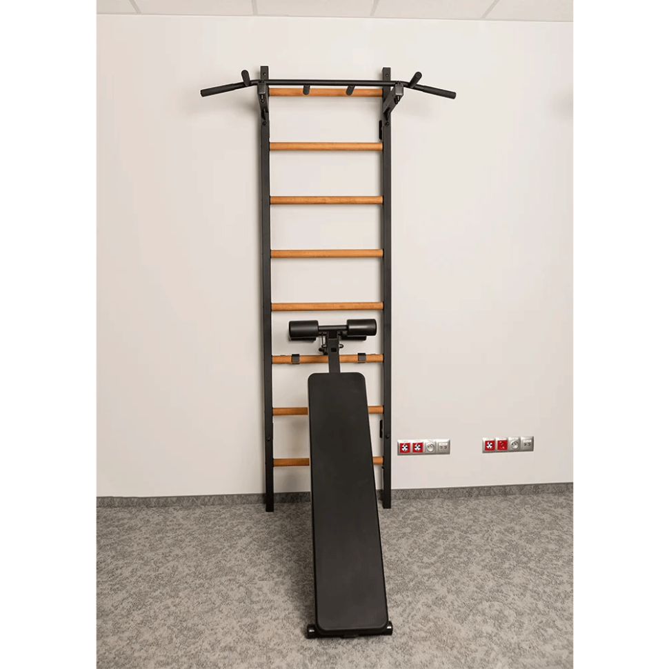 Модель B1B ідеально поєднується з усіма шведськими стінками BenchK, перетворюючи їх у повноцінний домашній тренажерний комплекс для зміцнення преса, спини, роботи з гантелями та штангою.