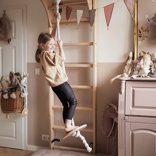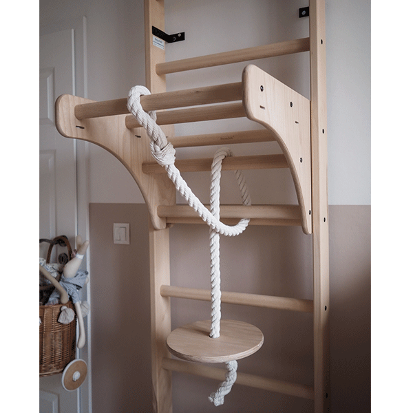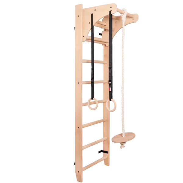 Шведська стінка BenchK 111+A204 — це універсальний спортивний комплекс із натурального світлого бука, створений для щоденних тренувань усіх членів сім’ї. Вона поєднує класичну гімнастичну драбину, регульований дерев’яний турнік та гімнастичні кільця з мотузками — повний функціональний набір для активного розвитку дітей і тренувань дорослих.