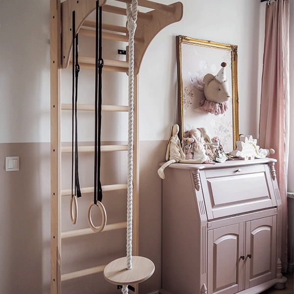 • гімнастичні кільця з канатом для лазання та гойдалки.