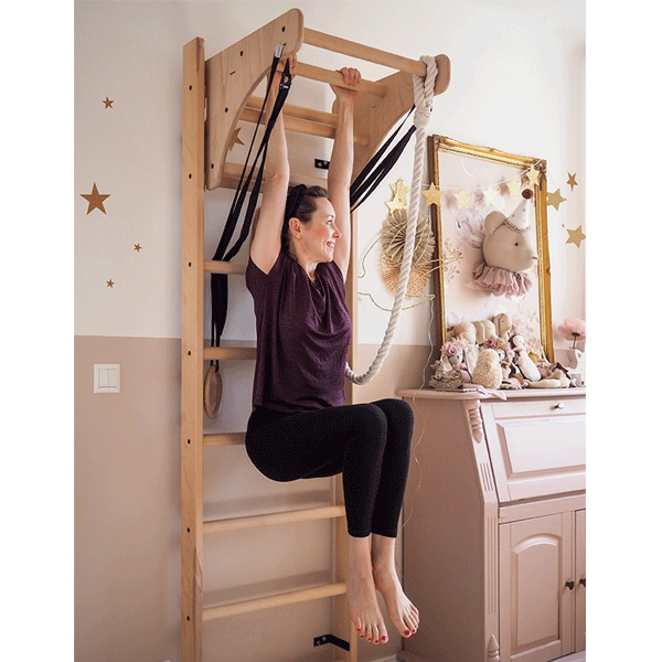 Це відкриває широкий спектр вправ для дітей і дорослих: підтягування, лазання, підвішування, зміцнення м’язів спини, преса, рук та ніг.