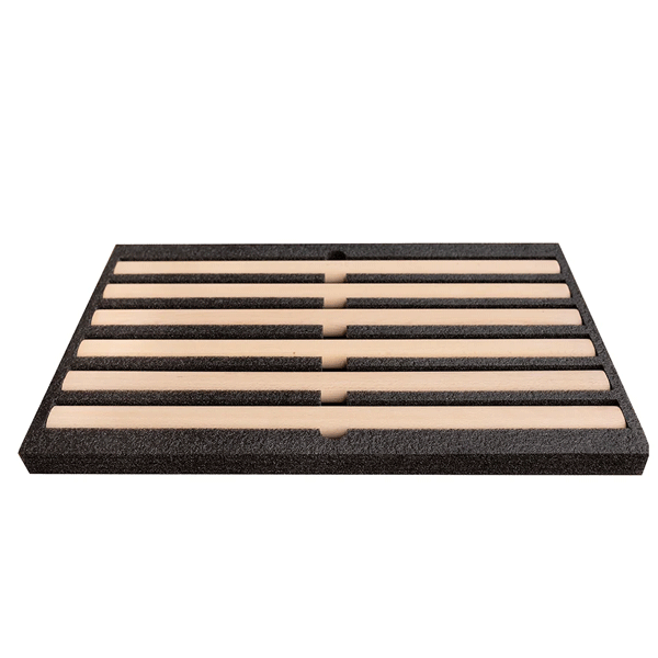 Перекладини виготовлені з високоякісного бука та покриті двома шарами органічної лляної олії, безпечної для контакту з їжею. Завдяки цьому дерево зберігає свій природний колір, виразну текстуру та приємну тактильність.