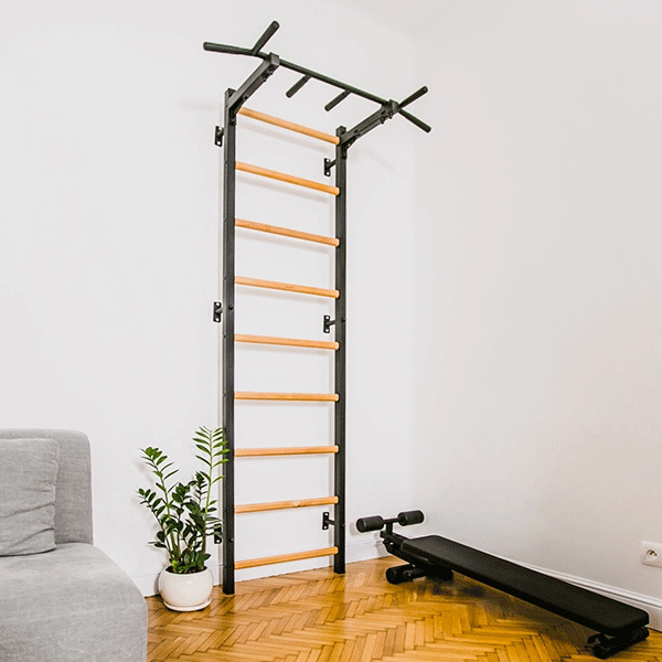 BenchK 721B — це стильна, міцна та багатофункціональна шведська стінка для дому, офісу та дитячих кімнат. Вона поєднує натуральні матеріали, сучасний дизайн та широкі можливості для тренувань усієї родини, займаючи мінімум простору та гарантує безпечні заняття.