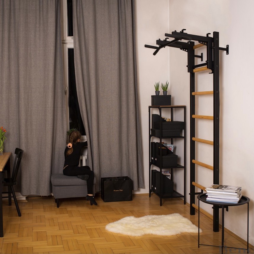BenchK 733B включає відразу кілька професійних модулів: шведську стінку BenchK 700B, знімний турнік PB3B, бруси для преса DB1B та універсальну лаву B1B. Така комплектація забезпечує широкий спектр вправ — від силових і функціональних до розтяжки, реабілітації та тренувань з власною вагою. Стінка вирізняється не лише багатофункціональністю, а й стильним дизайном, що гармонійно доповнює будь-який інтер’єр.