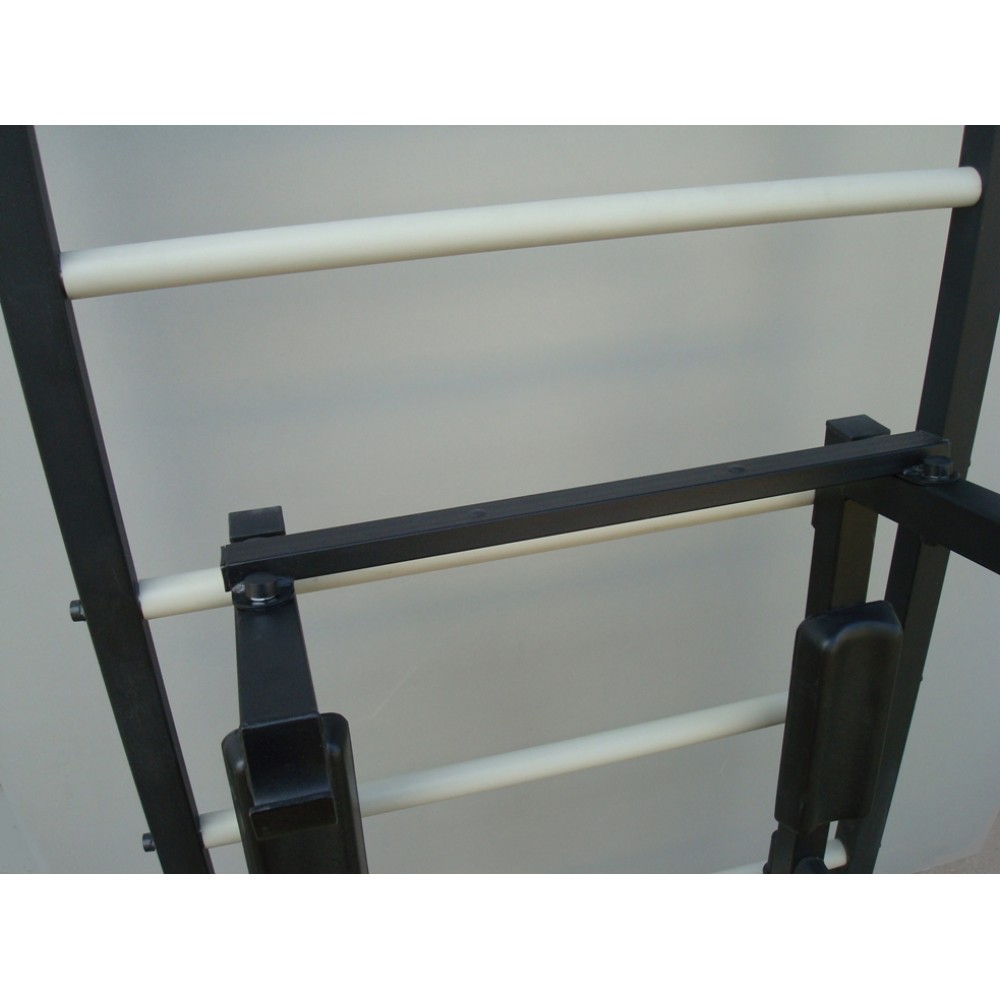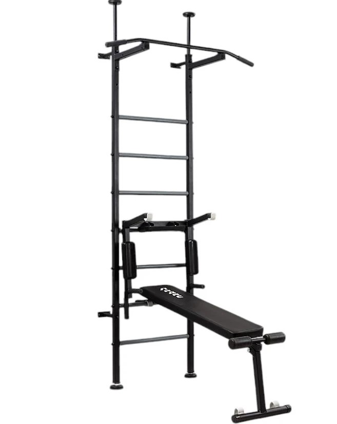 Ця модель об’єднує у собі турнік, бруси, лаву для преса та гімнастичні сходи, що забезпечує можливість виконання десятків вправ для розвитку спини, рук, преса, грудей і ніг.