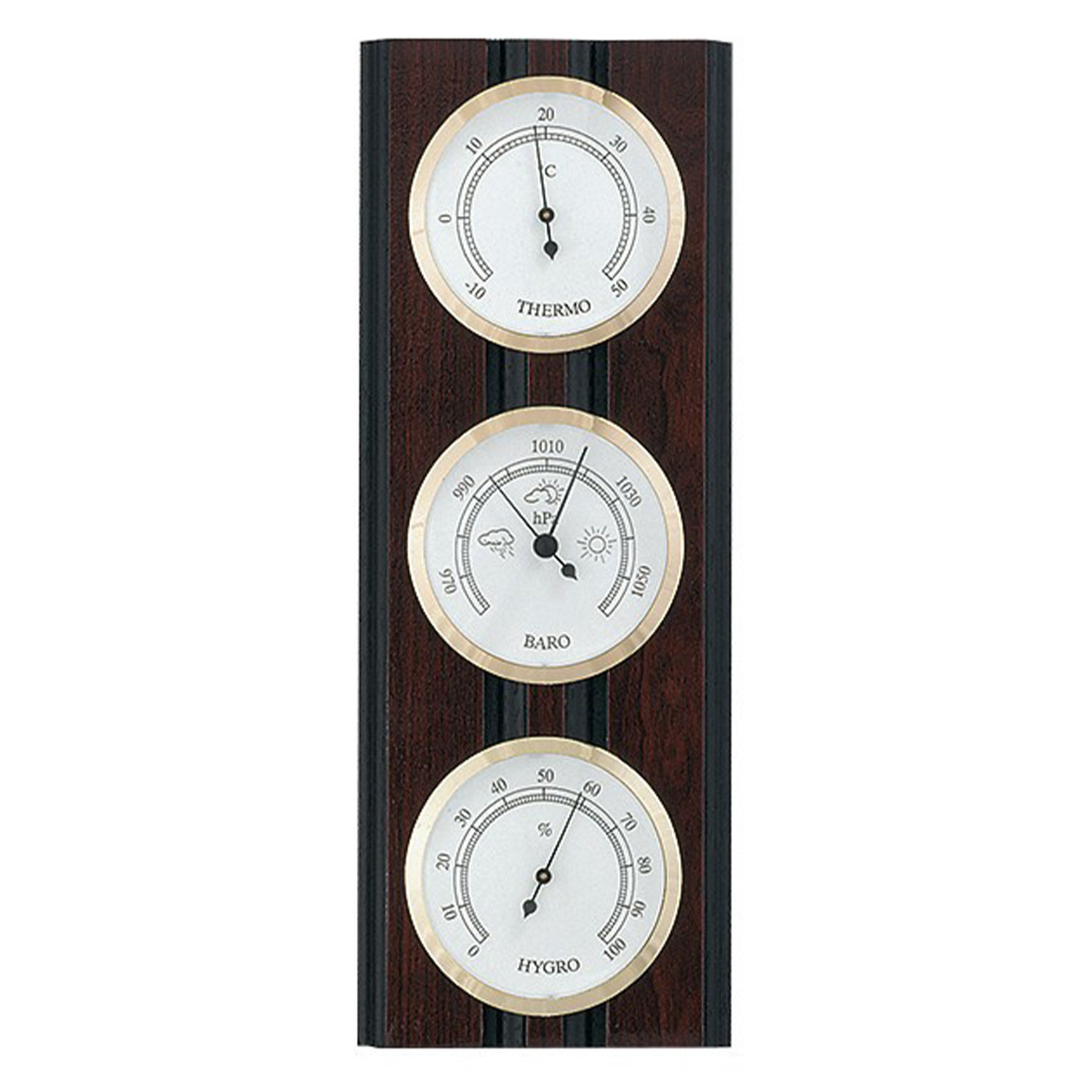 Настінна метеостанція Moller 203975 Mahagony складається з барометра із великим циферблатом, гігрометра та термометра, об'єднаних у дерев'яному корпусі. Вся продукція Moller виробляється з твердих порід дерева, а саме з бука, поверхня шліфується, після чого корпус покривається спеціальними складами лаку для надання необхідної довговічності, кольору та текстури деревини червоного дерева. Барометри Moller адаптовані для нашого ринку та мають шкалу не тільки в мілібарах (гектопаскалях), але й у міліметрах ртутного стовпа. Якість та надійність продукції Moller підкріплені п'ятирічною гарантією.